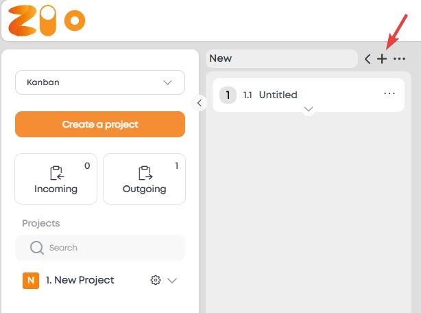 1. On project board, find and click "+" button (at the top of the board in each column).